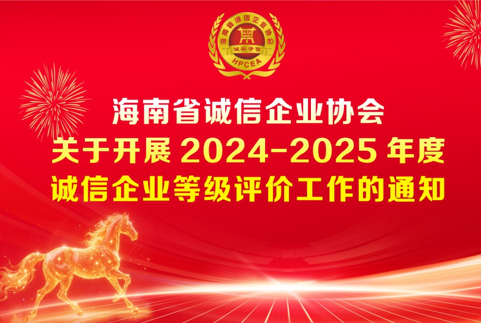 海南省诚信企业协会关于开展2024-2025年度诚信企业等级评价工作的通知各会员企业:为推进我省商务领域诚信建设,树立守信典型,优化营商环境,助力海南自贸港高质量发展,本会决定在会员企业中开展2024-2025年度诚信...详细>>